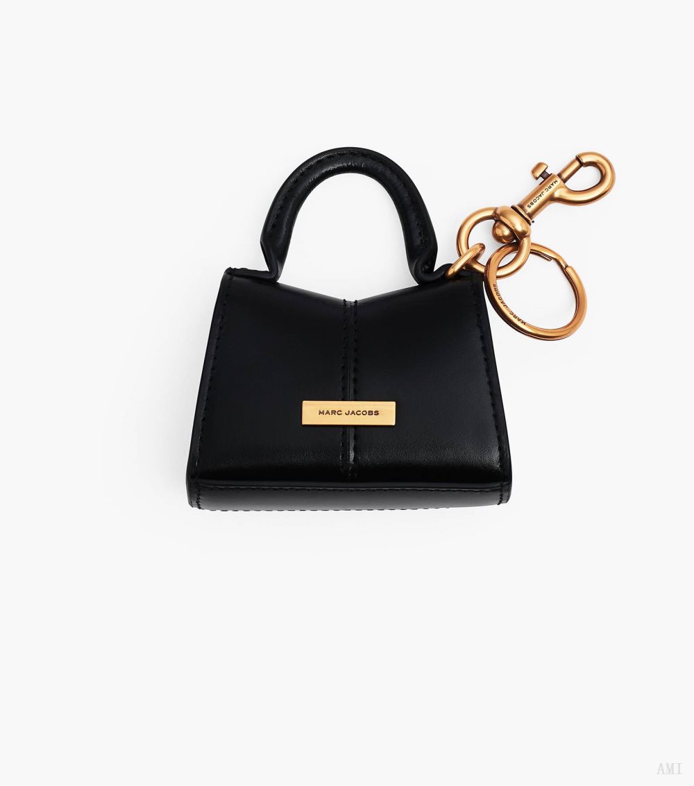 The MJ classics get the charmed life. Our signature St. Marc Top Handle is shrunken down as a charm. This nano accessory can be styled at your belt loop or attached to your favorite handbags or one of our utility logo straps at the d-ring. Just like the shoulder bag, it seals with a J Marc snap closure and has room to store your cash, earbuds, or keys.2R3SCP040S10 Smooth leather Magnetic closure 1 dog clip, 1 key ring PU lining 4in L x 2in D x 3in H 10cm L x 4cm D x 7cm H